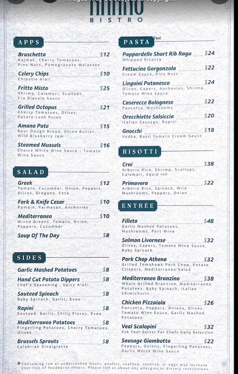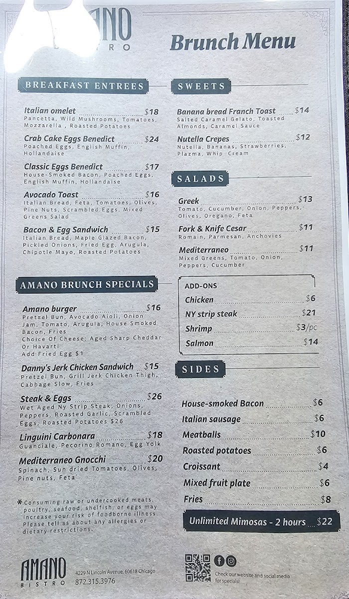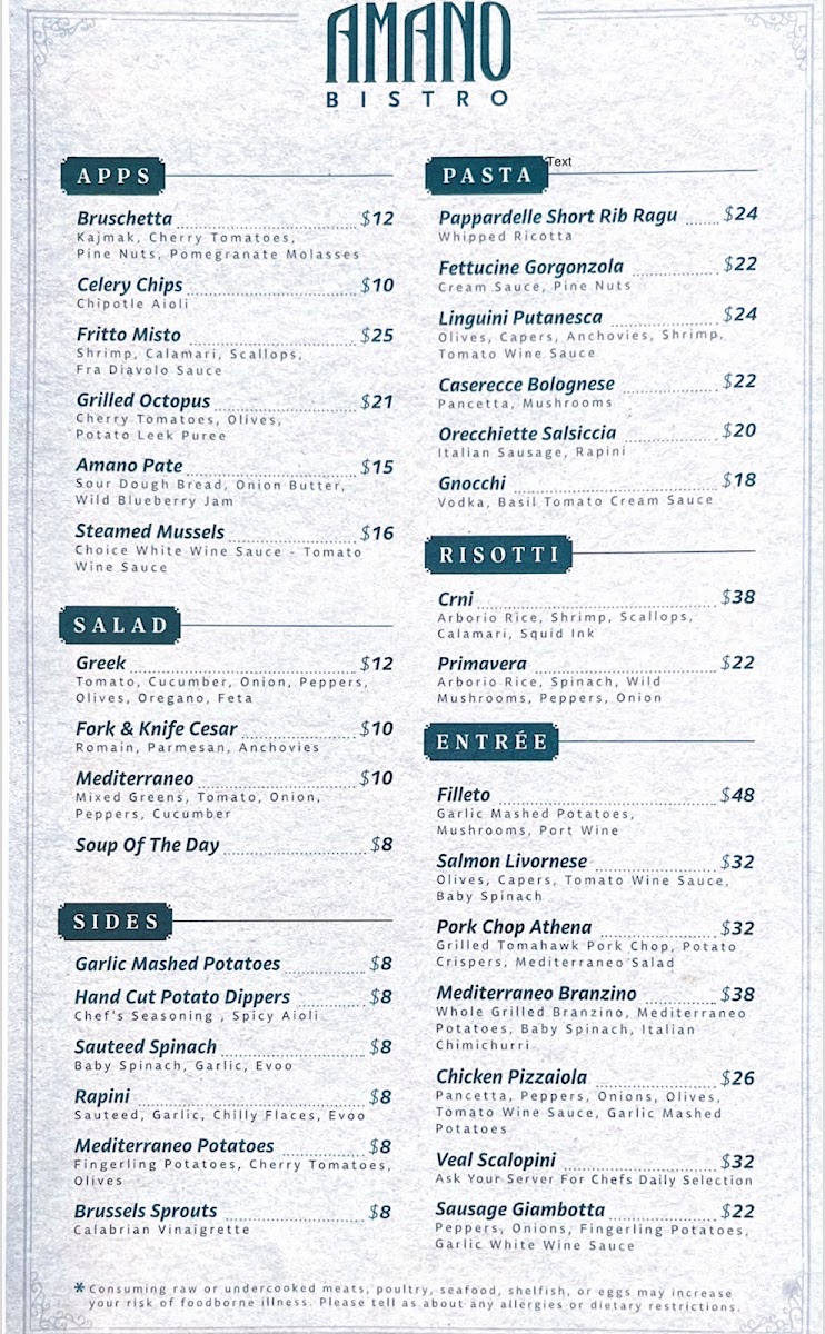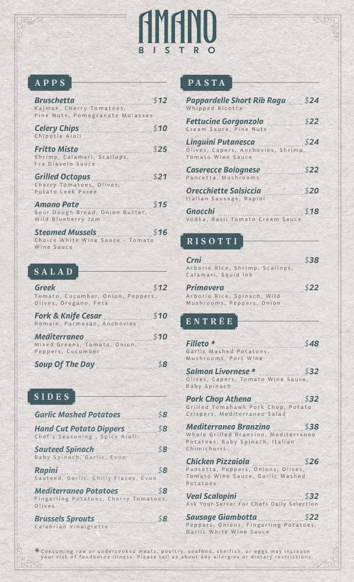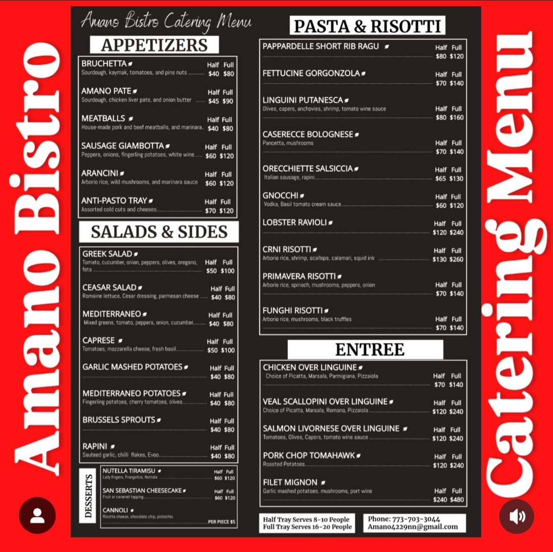 Amano Bistro Chicago Menu